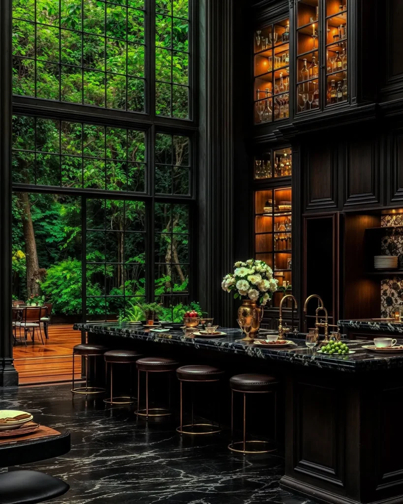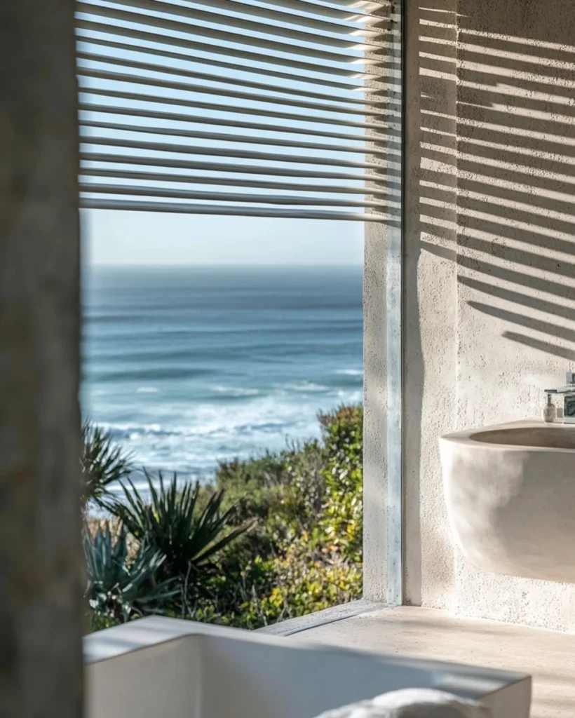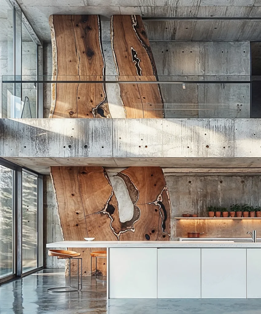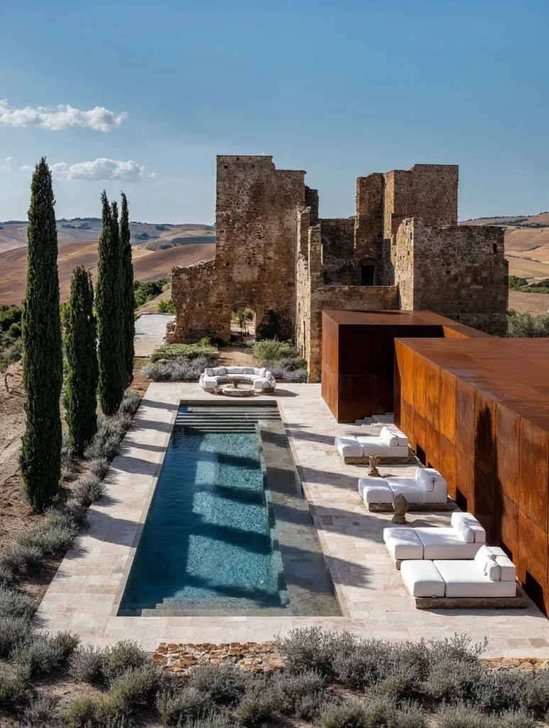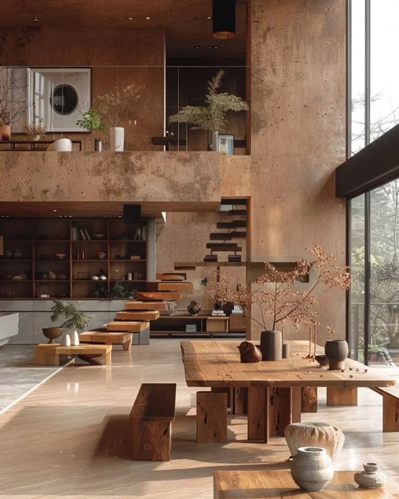 The gallery’s rhythm builds with an asymmetrical entry portal framed by corten steel fins, rusting elegantly to echo autumn leaves. The photo captures a family pausing at the threshold, humanizing the architecture. Caption: “Rusted romance in design #CortenSteel #DreamEntry.” Extensive details: Corten weathers to a stable patina, eliminating painting needs, and its earthy tones ground glass-heavy structures. Core concepts: Patented in the 1930s for bridges, it’s now a modern staple for low-maintenance exteriors. Ideas to ponder: Use it for sculptural screens around pools, preventing glare while adding artistic flair, or contrast with white interiors for dramatic indoor transitions.