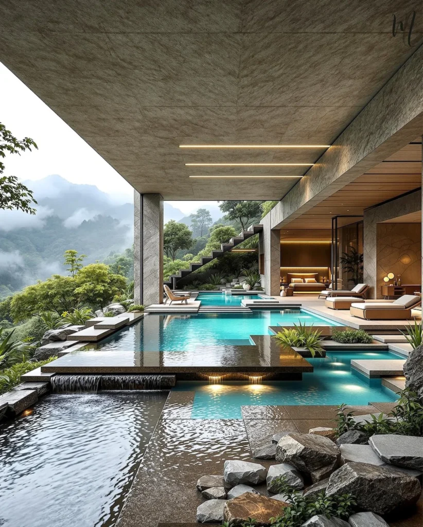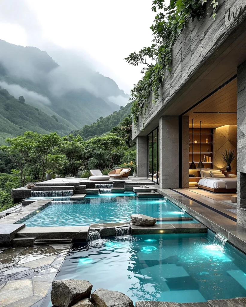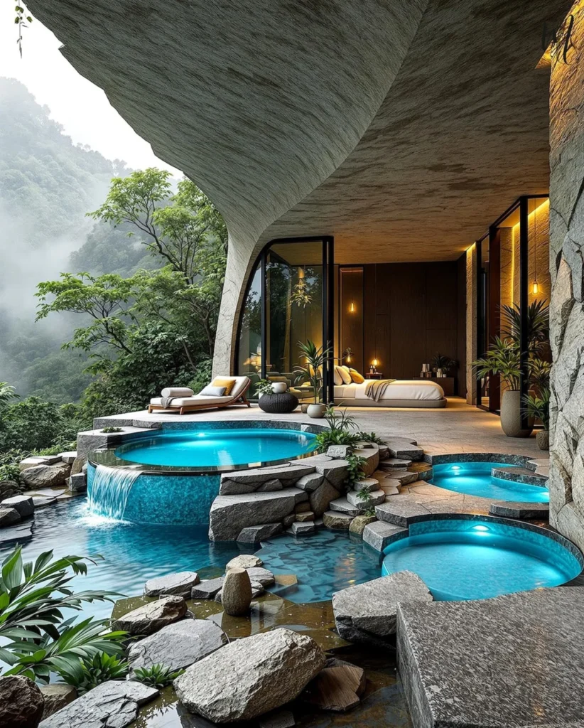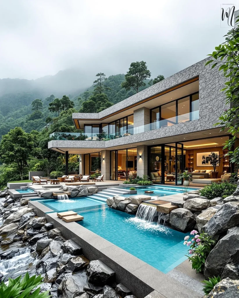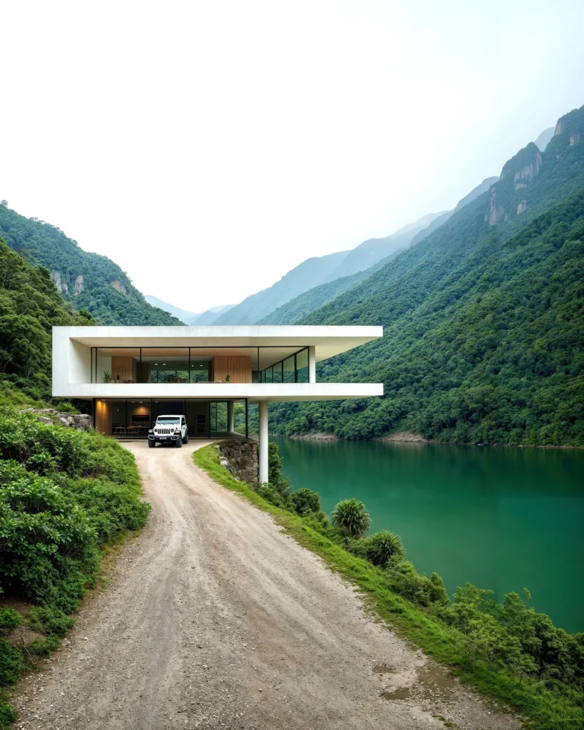 Swipe to the next: A cantilevered glass box hovering above a forested slope, captured at golden hour with sunlight refracting through triple-glazed panes. This post delves into structural engineering marvels, where steel I-beams support the overhang without visible columns, creating an illusion of flight. @idreamhouse notes, “Defying gravity, one view at a time #CantileverDesign #LuxuryLiving.” Delve deeper: Such designs maximize natural ventilation, reducing reliance on HVAC systems, and the glass is typically low-E coated to minimize heat gain. Topic basics: Cantilevers originated in Frank Lloyd Wright’s Fallingwater but evolved in modern iterations for urban infill projects. Ideas abound—pair it with a lower-level stone base for stability, or incorporate smart tinting that adjusts opacity via app control for privacy during movie nights.