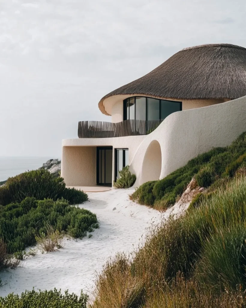 Mid-carousel, a butterfly roof inverts over a sun-drenched atrium, wings curving to funnel rainwater into a central cistern. The image plays with light filtering through ETFE cushions, lightweight and inflatable like high-tech bubbles. “Wings of wonder #ButterflyRoof #InnovativeDesign,” per @idreamhouse. In-depth: This roof form, inspired by Paul Rudolph’s 1950s experiments, enhances cross-breezes and collects water for greywater systems. Basics: Ideal for tropical climates, it reduces cooling loads by 15%. Ideation: Scale it down for carports, or integrate photovoltaic films on the slopes for off-grid power.