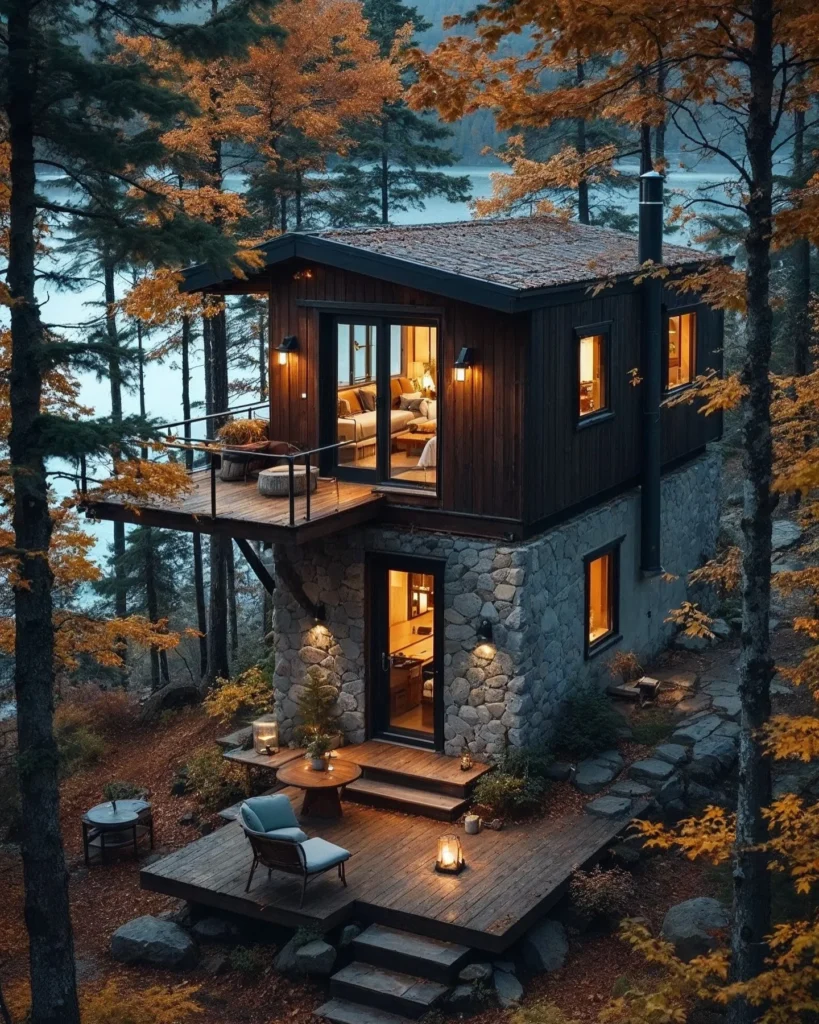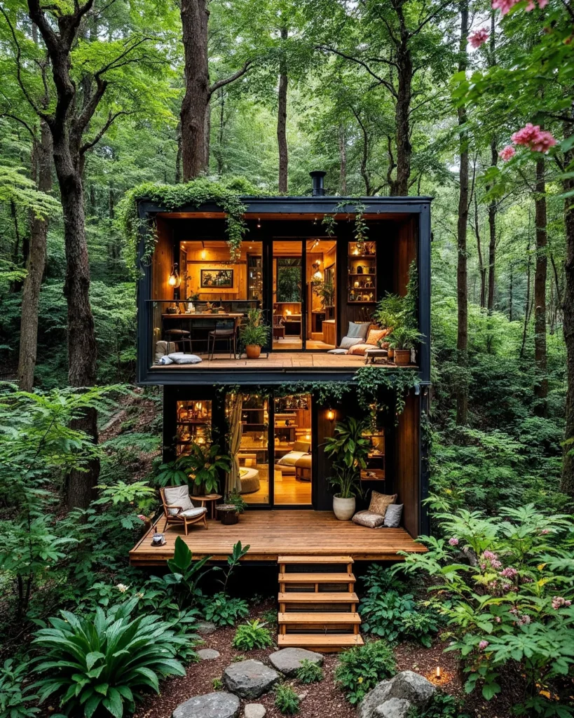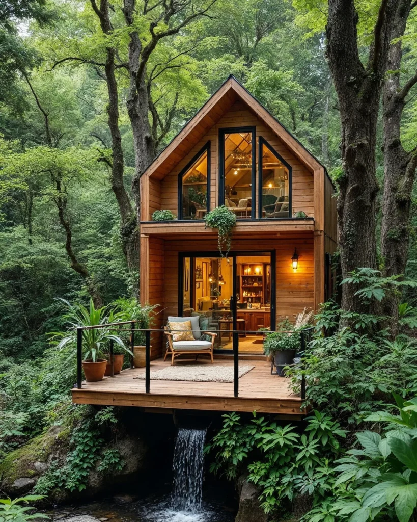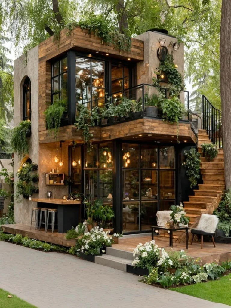 Penultimately, a reclaimed timber-clad cottage floats on stilts above a meadow, blending modern with rustic. The image frames it against wildflowers, emphasizing harmony. “Timber tales #ReclaimedWood #ElevatedLiving.” Elaborate: Salvaged barn wood adds character, with FSC certification ensuring ethics. Core: Elevates for flood-prone areas, creating under-deck storage. Inspirations: Add deck swings or integrate rain gardens below for permaculture vibes.