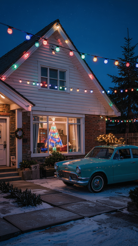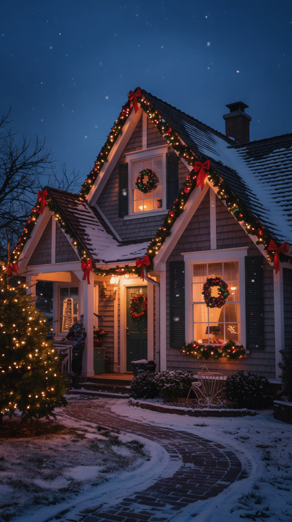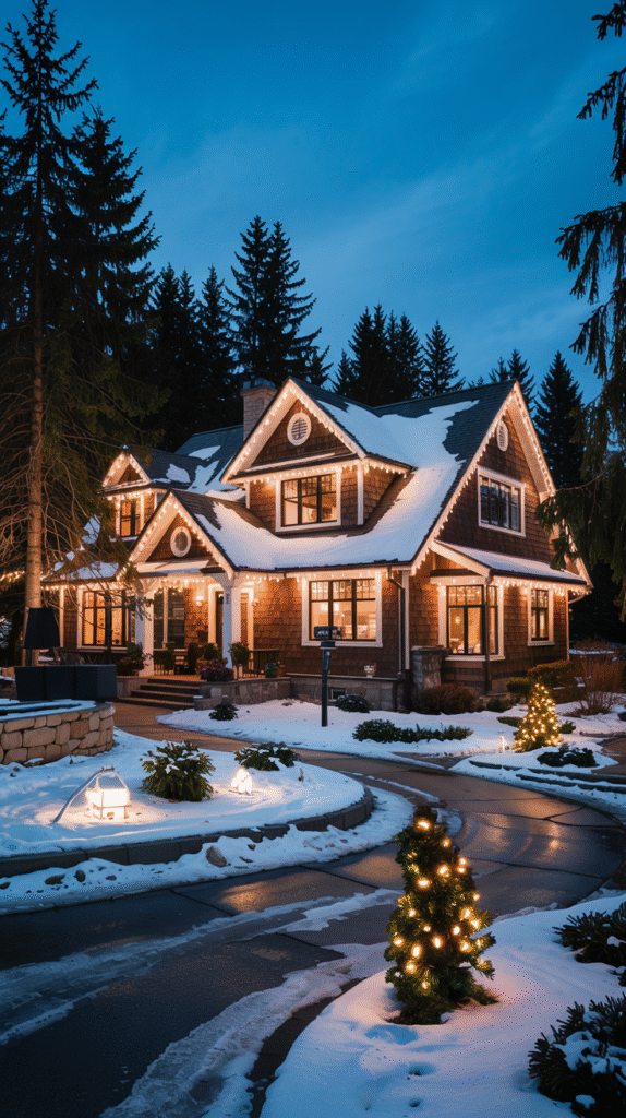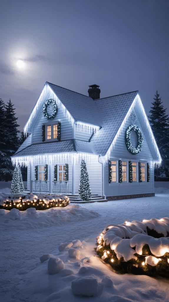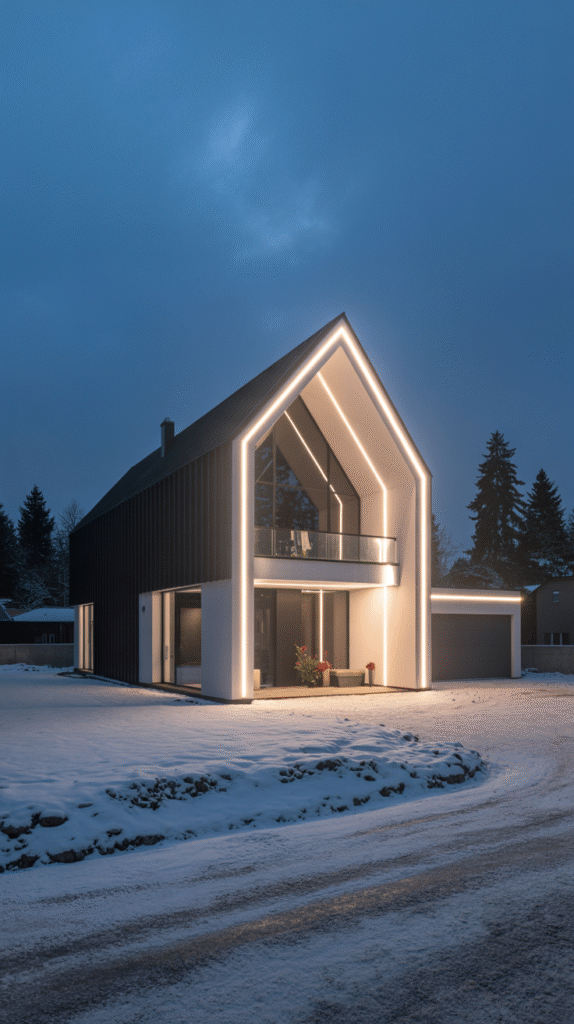 For those who prefer clean lines and simplicity, I adore the look of sleek string lights framing the home’s architecture. One year, I outlined my windows and roof with bright white LED strips, and it gave such a sophisticated, modern aesthetic.