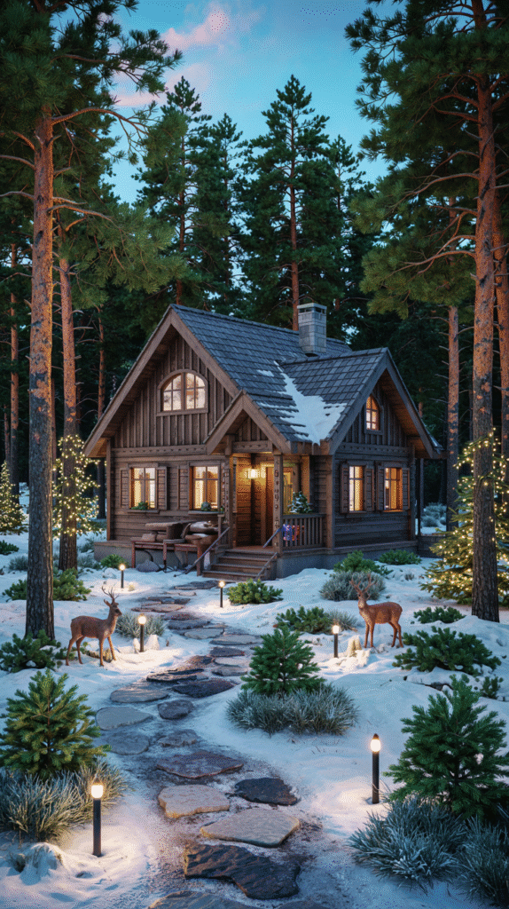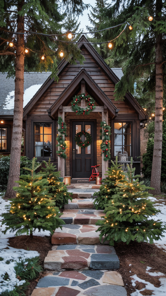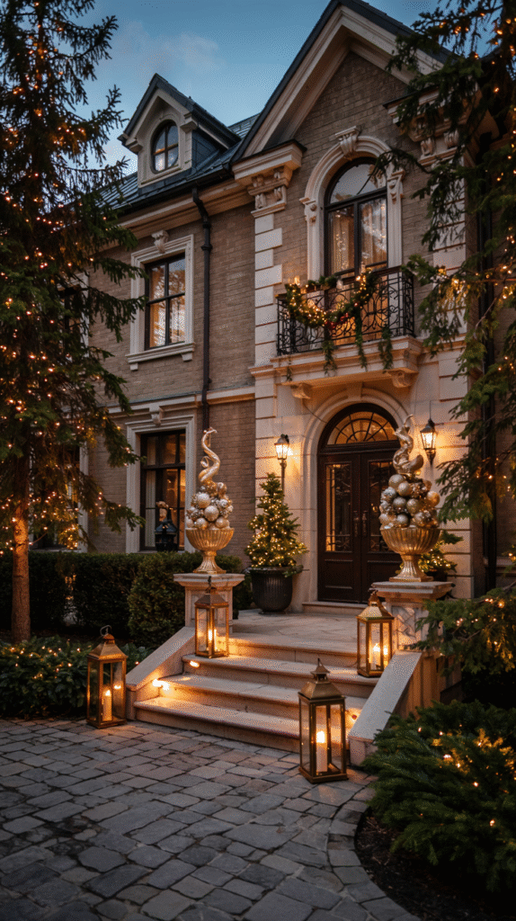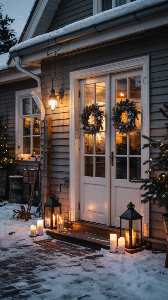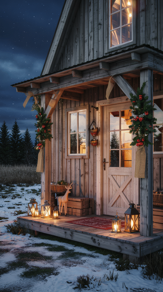 I once visited a farmhouse that had burlap ribbons, wooden reindeer cutouts, and lanterns with flickering candles. It felt so warm and authentic — I borrowed the idea for my own front porch, and it’s still one of my favorite looks.