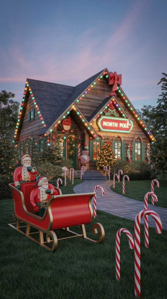 Last year, I went bold with a Santa’s workshop theme — toy soldiers, sleigh props, candy canes, and even a glowing “North Pole” sign by the mailbox. The neighborhood kids loved it, and it became a fun annual tradition.