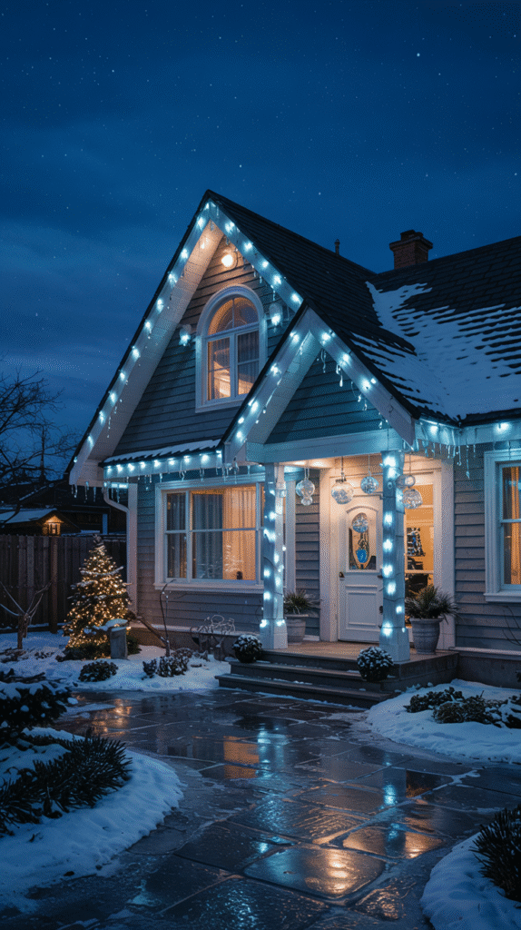 Blue and silver lights create a frosty elegance that feels cool and refreshing. I paired icy tones with crystal ornaments — it gave my house a luxurious winter sparkle.