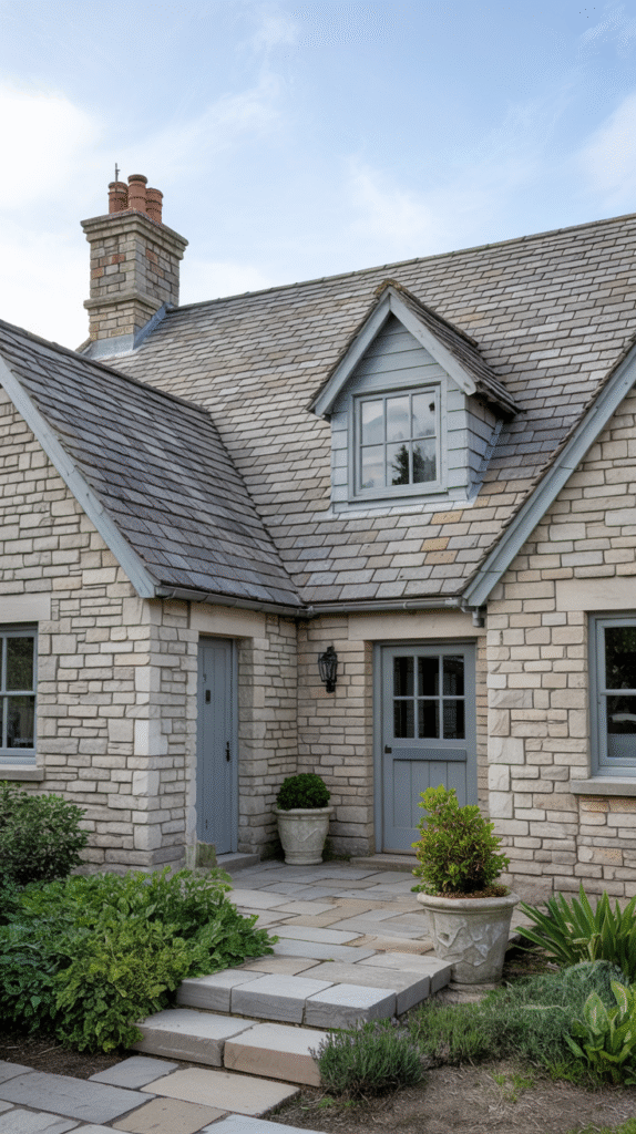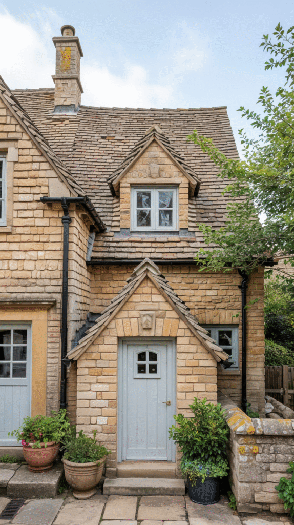 Unique to the Cotswolds, these roofs use local limestone tiles that weather to a warm, honeyed patina. The tiles are cut into irregular shapes, creating a textured, almost mosaic-like surface that glows in sunlight, enhancing the region’s golden-hued cottages.