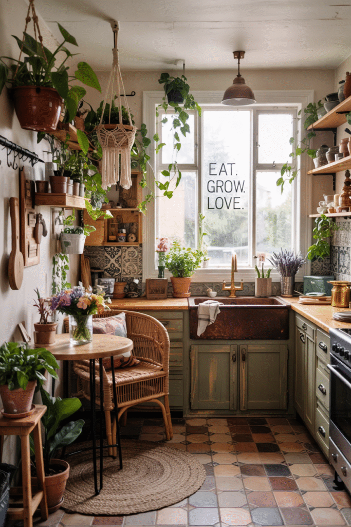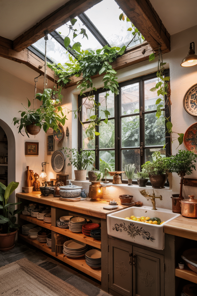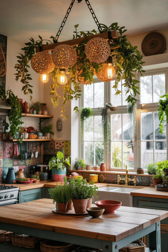 Maximalist Biophilic Boho Kitchen Design