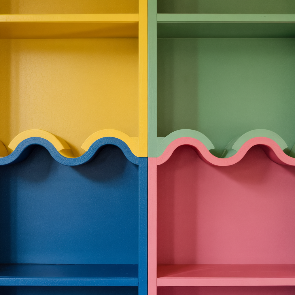 Modify a bookshelf edge to create a wavy silhouette, then paint in two complementary colors to highlight the shape.