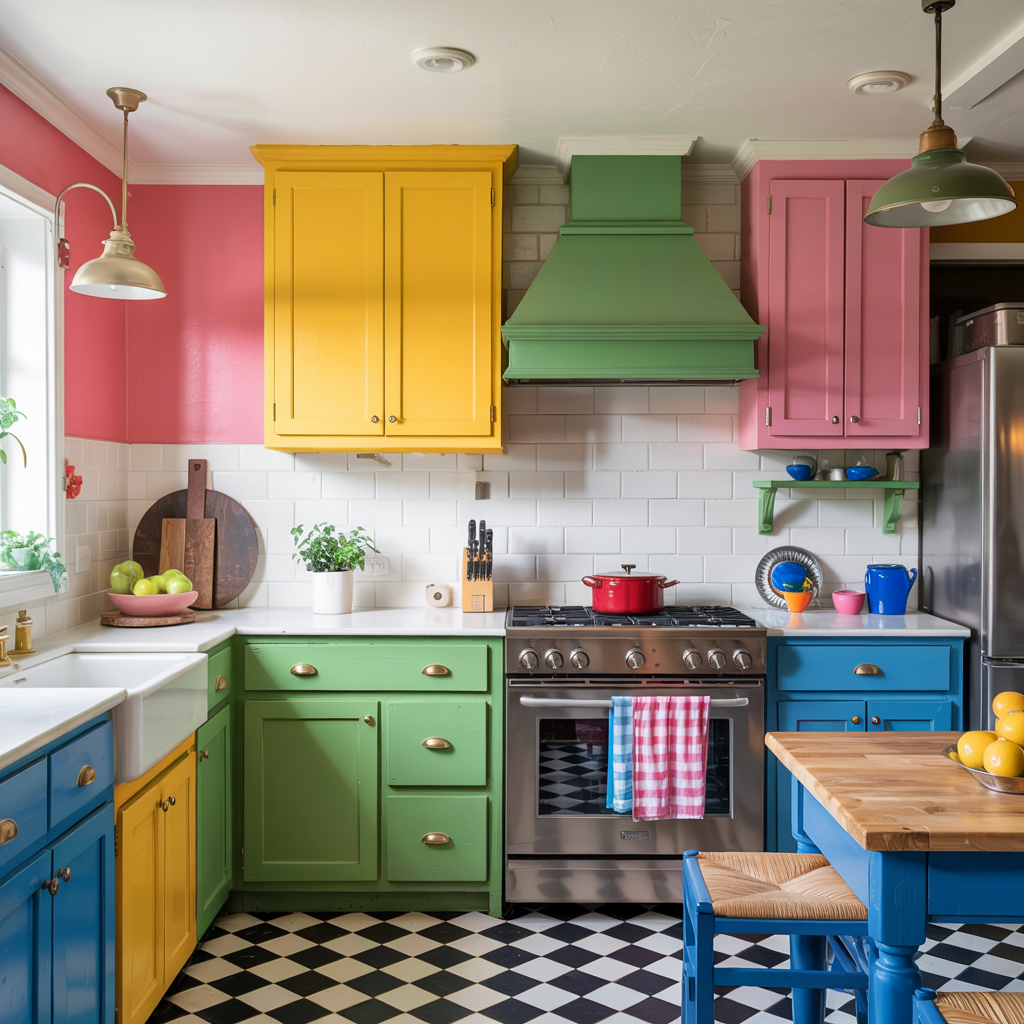 25. Color-Blocked Kitchen Cabinets