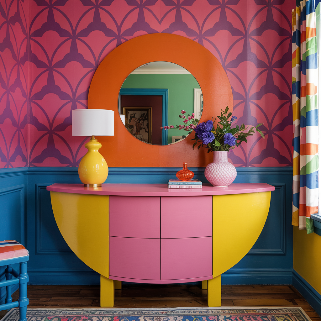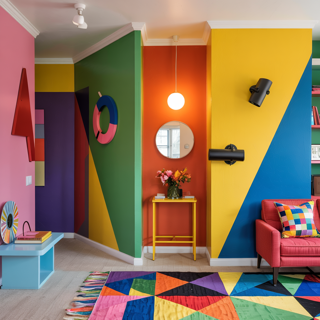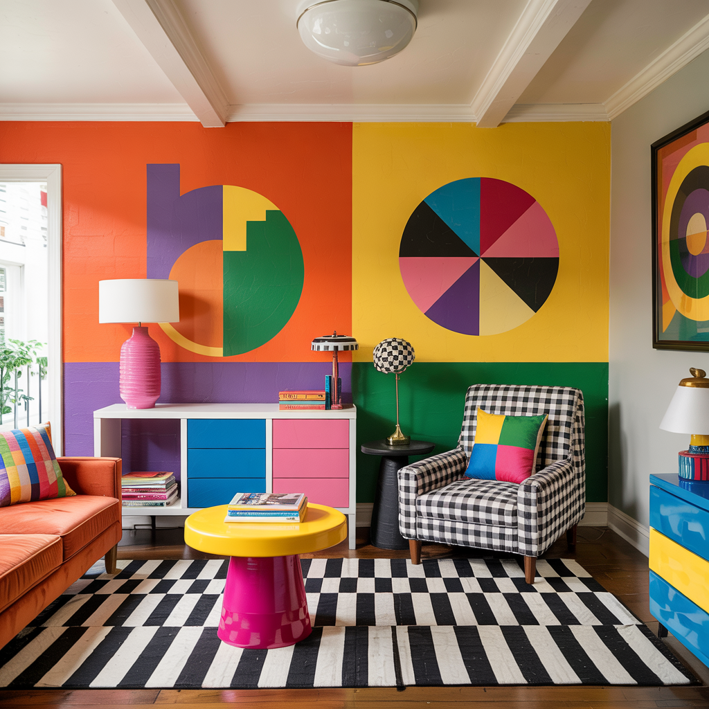 Memphis Group design is loud, joyful, and unapologetically postmodern. It mixes bright primaries with pastels, geometric forms, playful patterns, and unexpected materials. The style is a rebellion against bland, safe interiors — but it’s not just for galleries. With paint, a few clever furniture swaps, and inexpensive DIY techniques, you can bring Memphis energy into real homes. Below are 100 practical, realistic ideas — each with clear steps or material tips so they’re achievable by homeowners, decorators, or DIY fans.