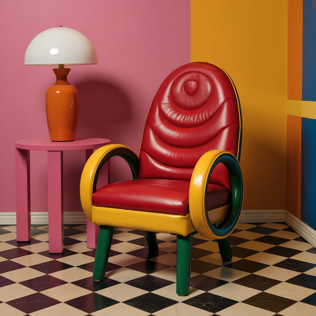 Source or reupholster a chair with a wavy, ergonomic back. Pick vinyl or bold fabric; add contrasting piping for extra Memphis drama.