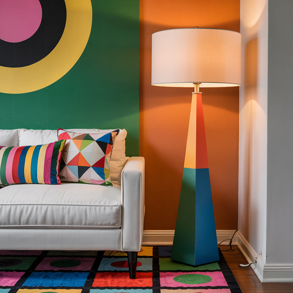 Choose a floor lamp with a large geometric base and a simple drum shade. Paint the base in two colors for extra punch.