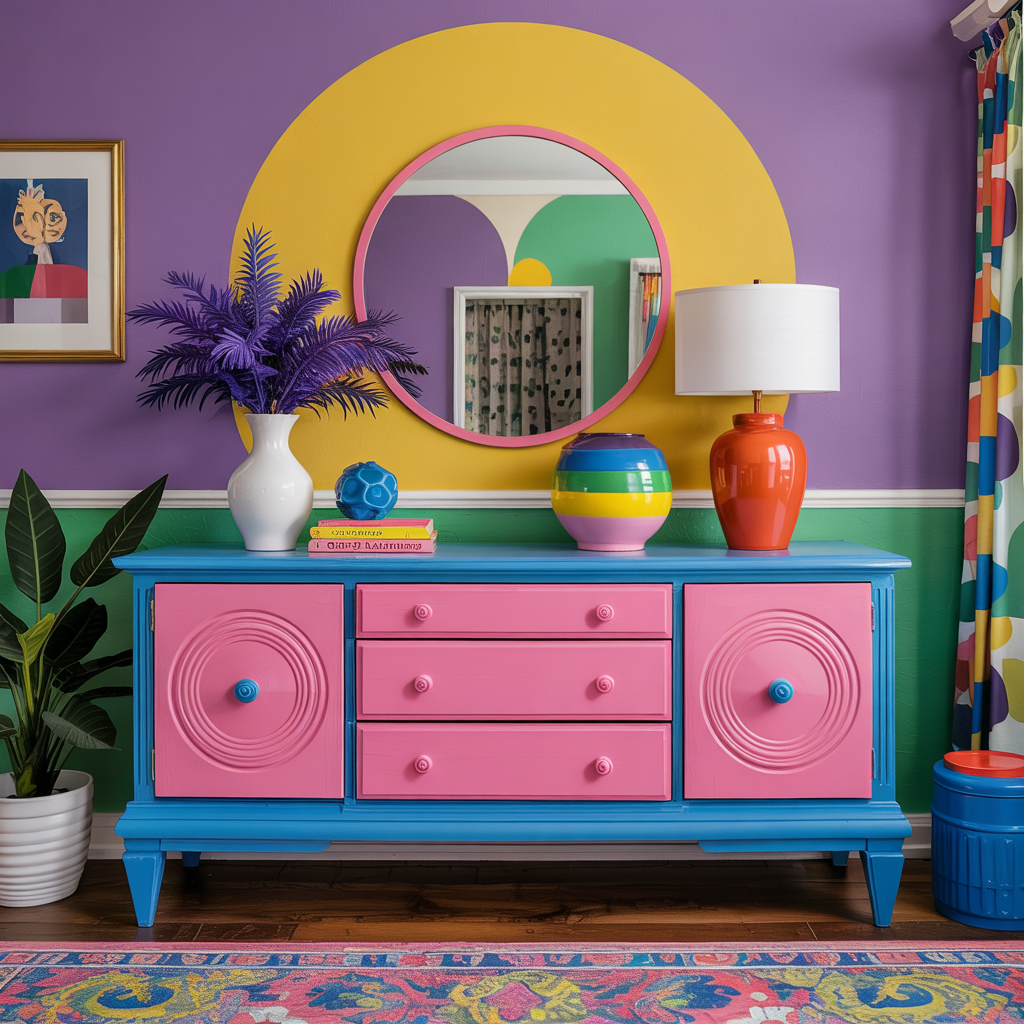 Memphis Group design is about joyful risk. It welcomes color collisions, bold geometry, and playful materials. You don’t need to renovate your whole house to enjoy the style: pick a few of the above ideas and test them. Paint is cheap. Decals are reversible. Small furniture swaps create huge personality shifts. Use these 100 realistic ideas as a menu: mix, match, and tweak to build a home that’s unmistakably yours.